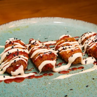 Envueltos en pasta filo Katifi extracrujientes con salsa Sweet Chilli...